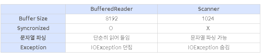 - 여러 스레드 간에 Scanner는 공유가 불가능하지만, BufferedReader는 공유할 수 있다.
